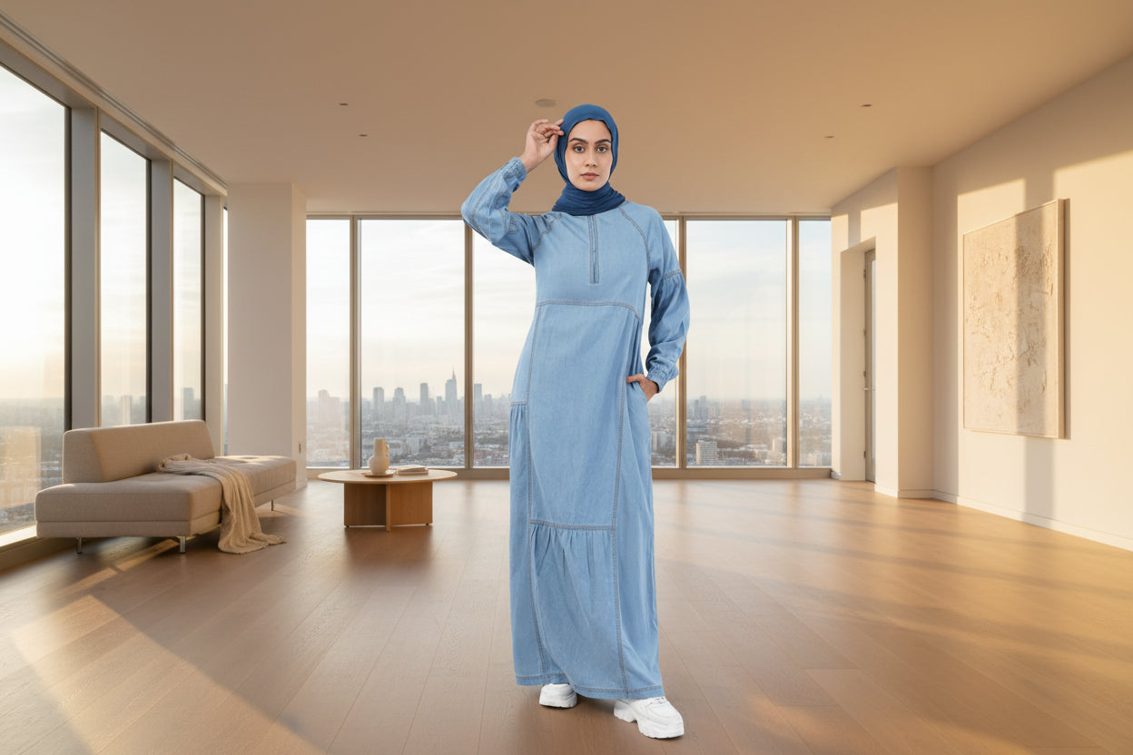 Ice Blue Denim Essential Jilbab